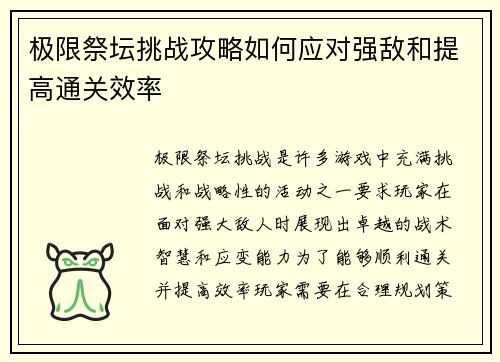 《神魔大陆》作为一款深受玩家喜爱的多人在线角色扮演游戏,一直以来以其丰富的世界观和精彩的战斗系统吸引着大量玩家。而此次,游戏推出了全新的职业系统,为玩家提供了更多的探索和冒险机会。本文将围绕《神魔大陆》全新职业系统展开,详细解析新职业的特点、技能体系以及如何开启这场冒险之旅。文章将从四个方面进行深入...